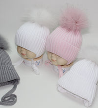 Мила вязана шапочка з натуральним помпоном. Зав'язки та м'які вушка ідеальні для перших прогулянок у холодну пору. Підкладка – фліс.