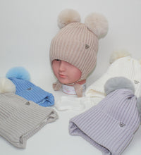 Дитяча шапочка з штучними помпончиками і флісовою підкладкою. М’яка, тепла і дуже зручна — саме те, що потрібно взимку.